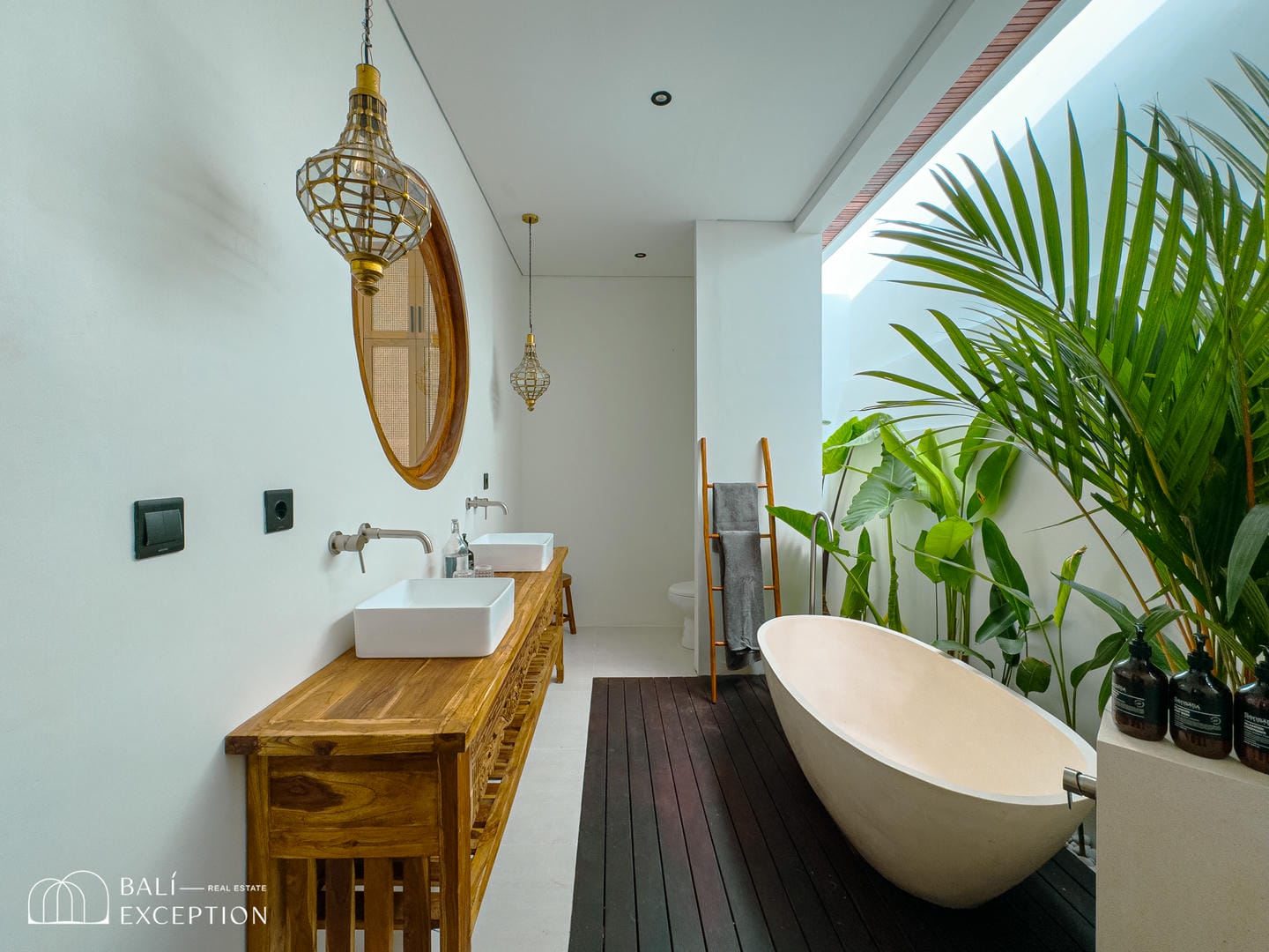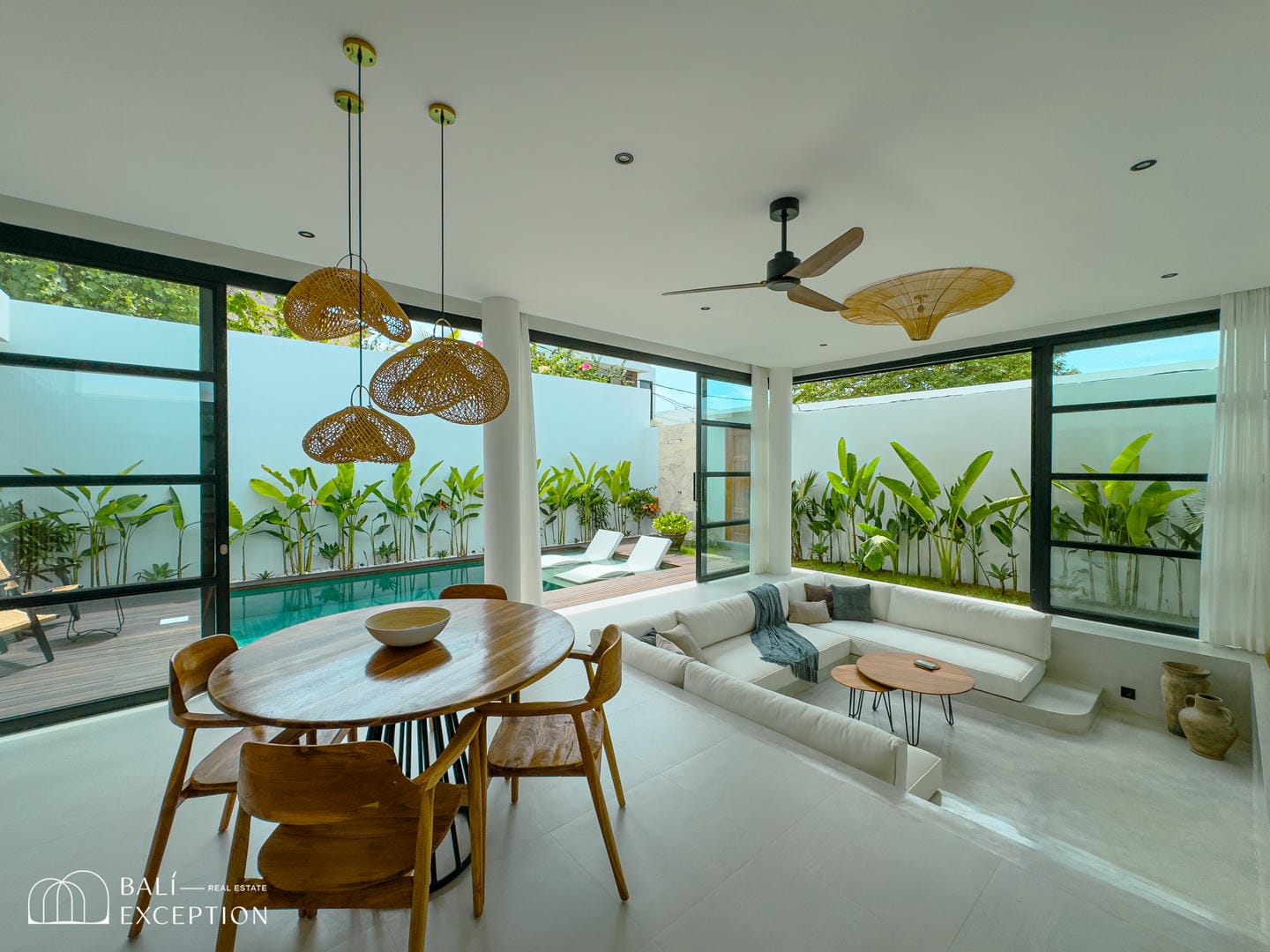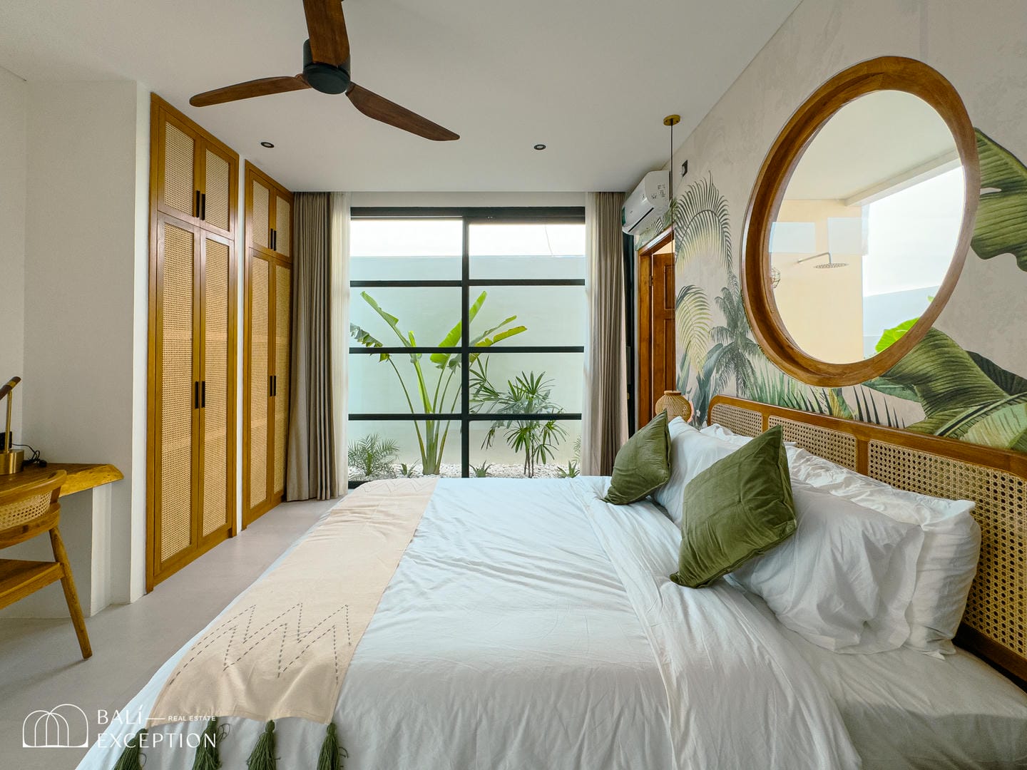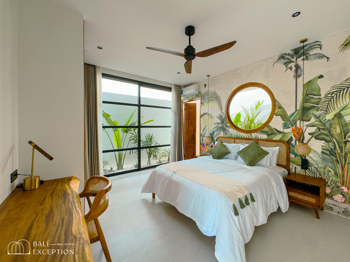 Discover this stunning villa in Pecatu Uluwatu, ideally situated near excellent restaurants, charming cafes, and vibrant beach clubs. It's just a 5-minute motorbike ride to Dreamland Beach, 8 minutes to Bingin Beach, 2 minutes to New Kuta Golf, and 8 minutes to Bambu Fitness. This villa features a modern tropical design, with a land size of 226 sqm and a well-planned build size of 110.9 sqm. Inside, you'll find 2 bedrooms, 2 bathrooms, a living room, a kitchen, and a dining area. The villa's standout features include a sparkling swimming pool, a chic sunbed, and a fireplace, perfect for relaxing and entertaining. Don't miss out on this exceptional investment opportunity in a prime location!