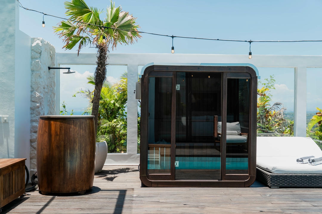 Outside, enjoy a private pool with a sauna, a cozy lounge area, and a BBQ area, perfect for relaxing or entertaining in a tropical setting.