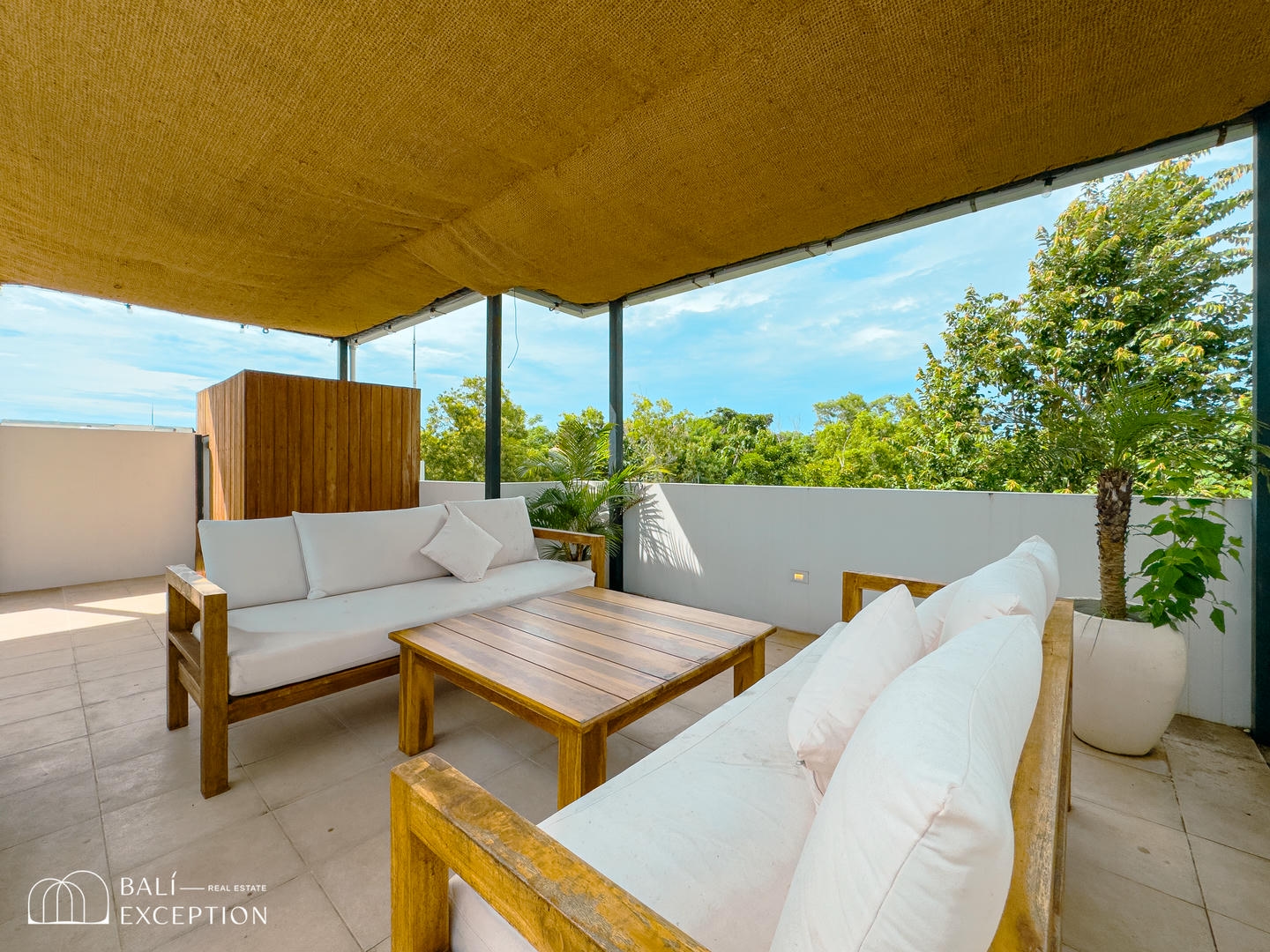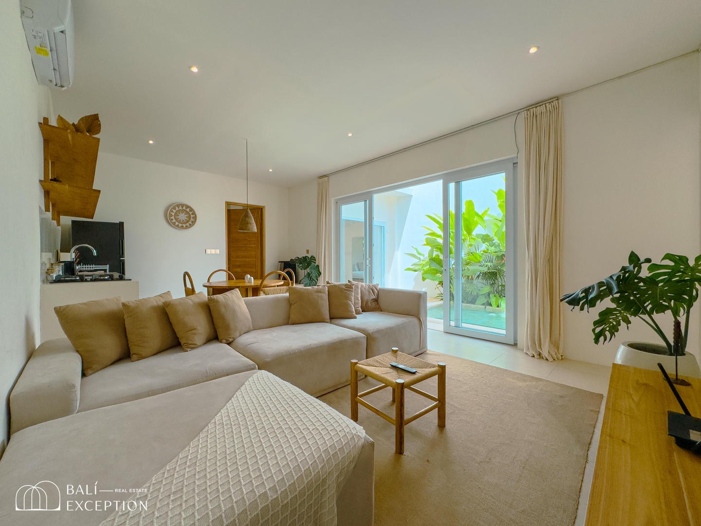Outside, enjoy a private pool with sunbeds and a relaxing lounge area, while the rooftop terrace with a lounge space provides the perfect setting to unwind and soak up the tropical surroundings.