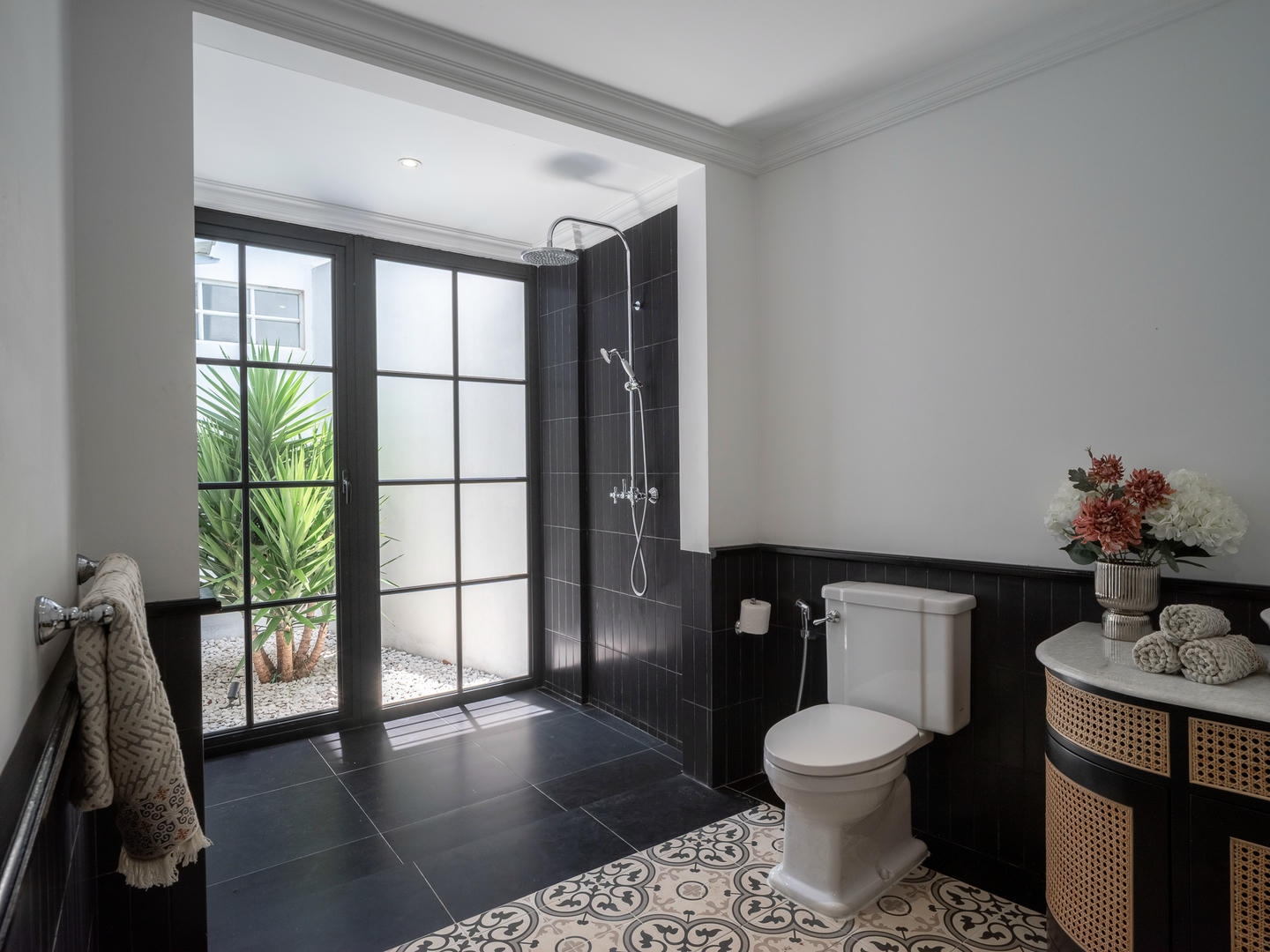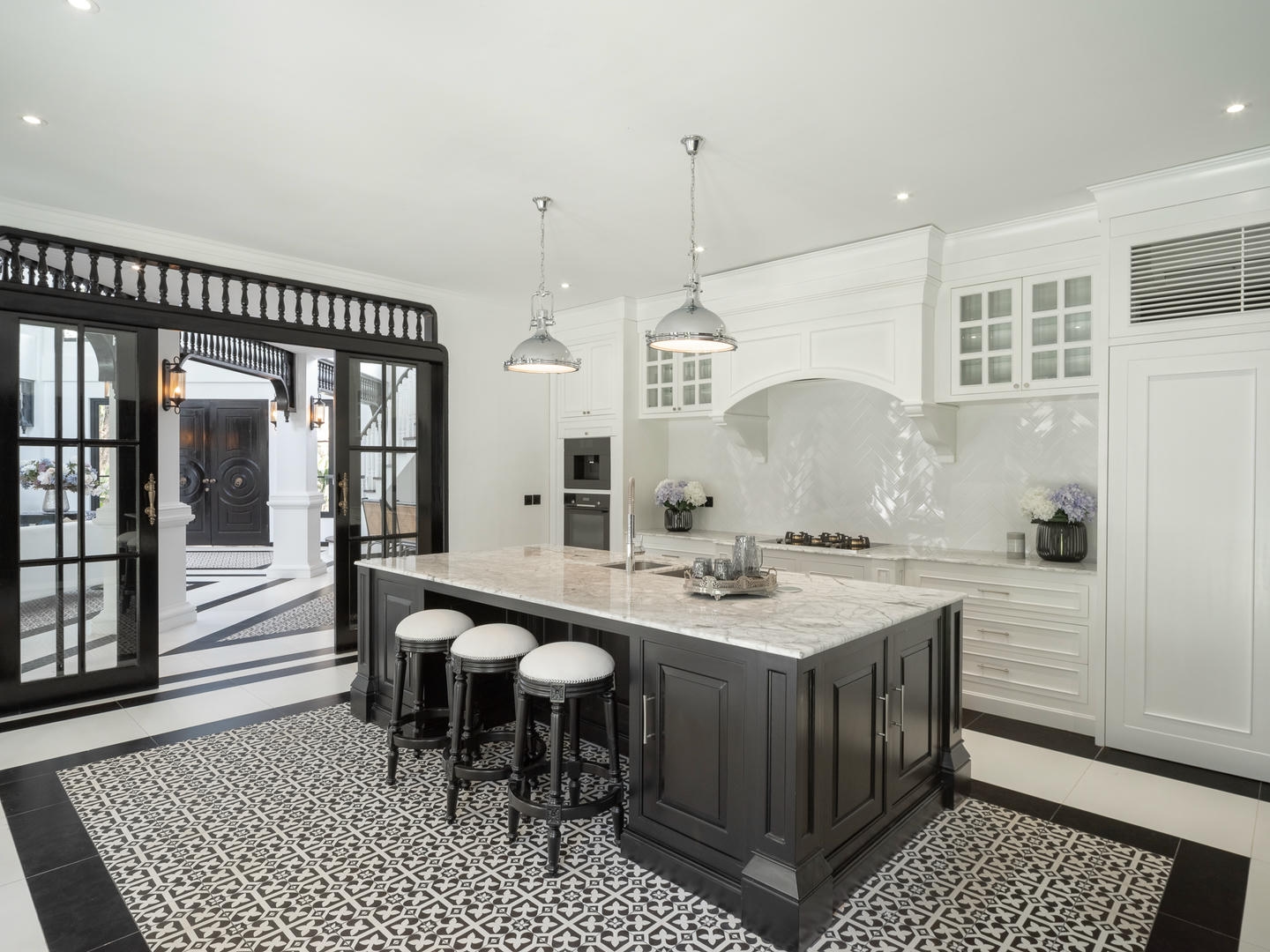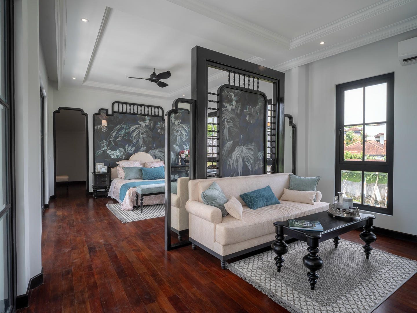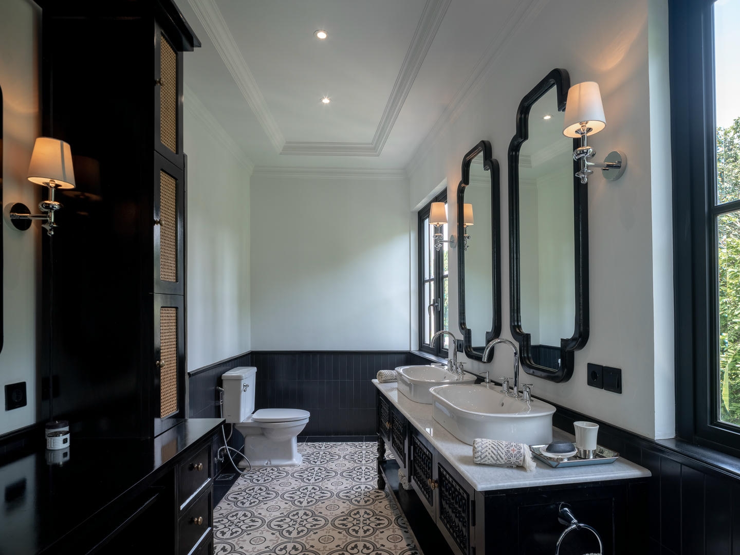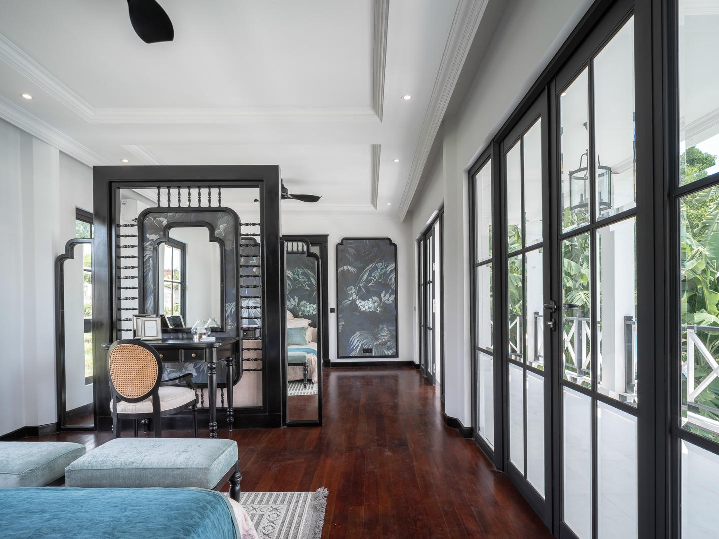 As you step through the grand entrance, a soaring 10-meter-high lobby welcomes you with its breathtaking elegance. The villa’s colonial-inspired design is seamlessly blending classic charm with a tropical allure. With 7 opulent bedrooms, each with its own luxurious ensuite bathroom. The master suite features a lavish bathtub. Two additional bathrooms and thoughtfully designed staff quarters ensure absolute convenience and functionality.