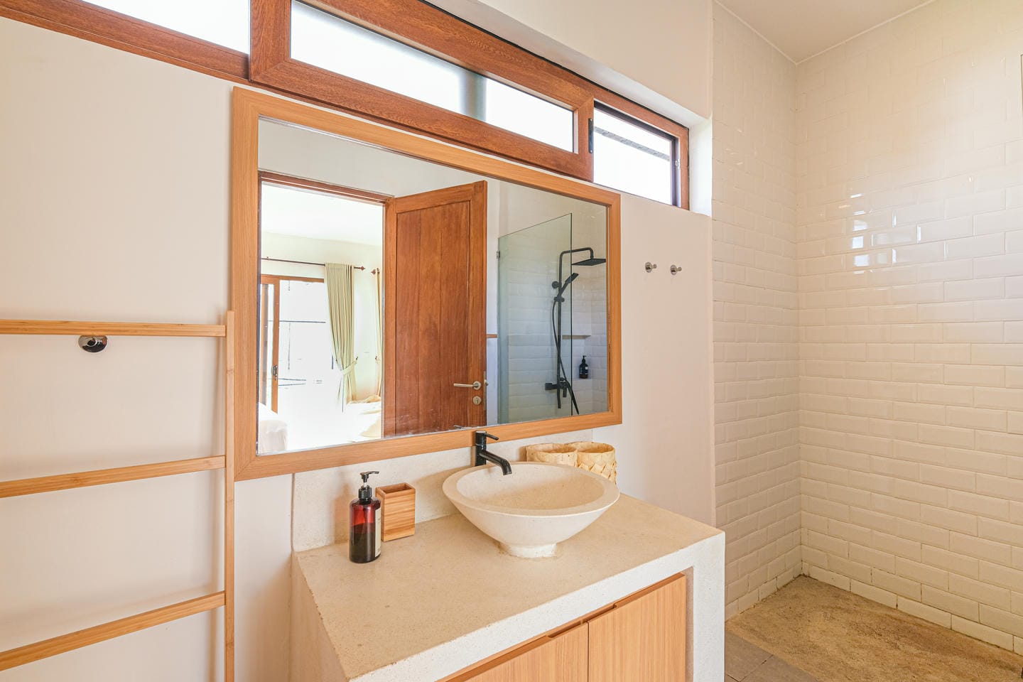 Upstairs, the two bedrooms each feature a walk-in wardrobe, ensuite bathroom, and a shared balcony, offering a serene spot to enjoy the morning light or evening breeze.