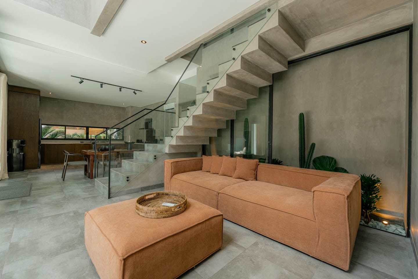 This villa features a modern and elegant design with a spacious open-plan living area that seamlessly connects the lounge, dining space, and kitchen. Large windows allow plenty of natural light to fill the interior, creating a bright and airy atmosphere, while high ceilings and the open layout enhance the sense of space. The well-organized floor plan ensures both comfort and functionality, making the home ideal for everyday living as well as entertaining guests. The villa comes with three bedrooms, each featuring large windows and a walk-in closet, along with four bathrooms, creating a comfortable and stylish living environment.