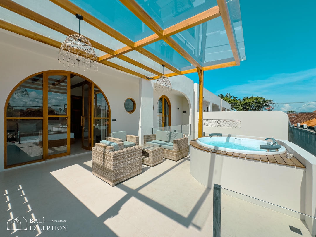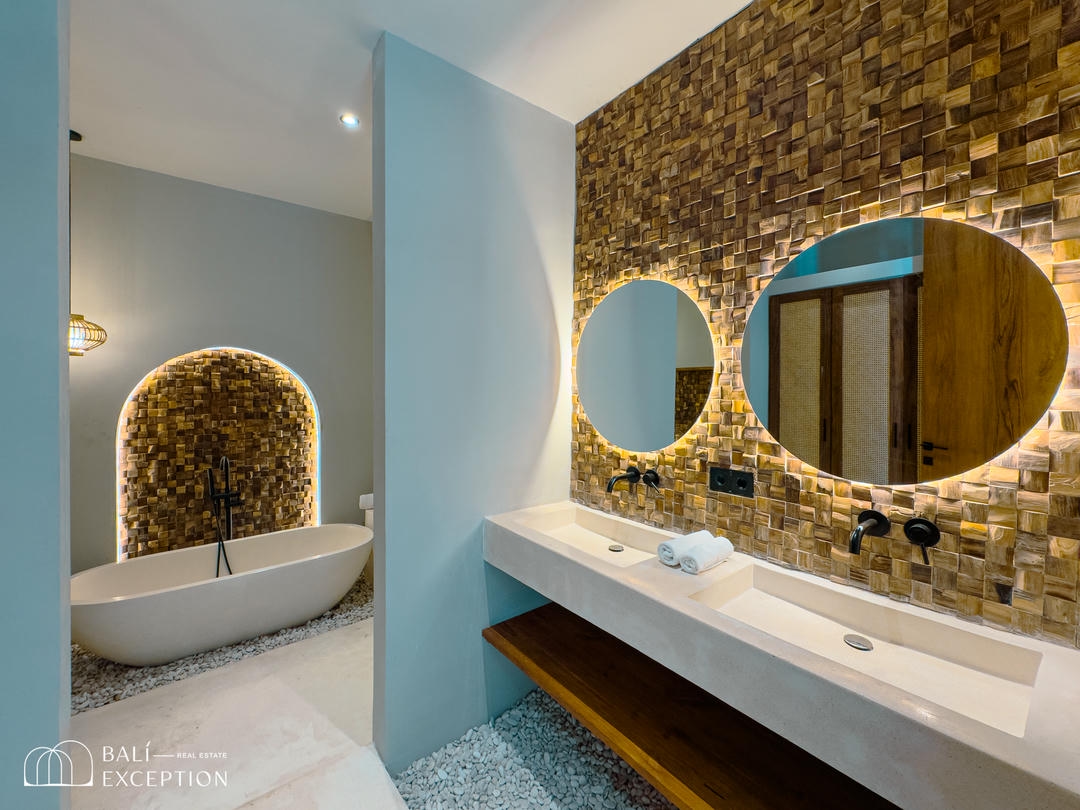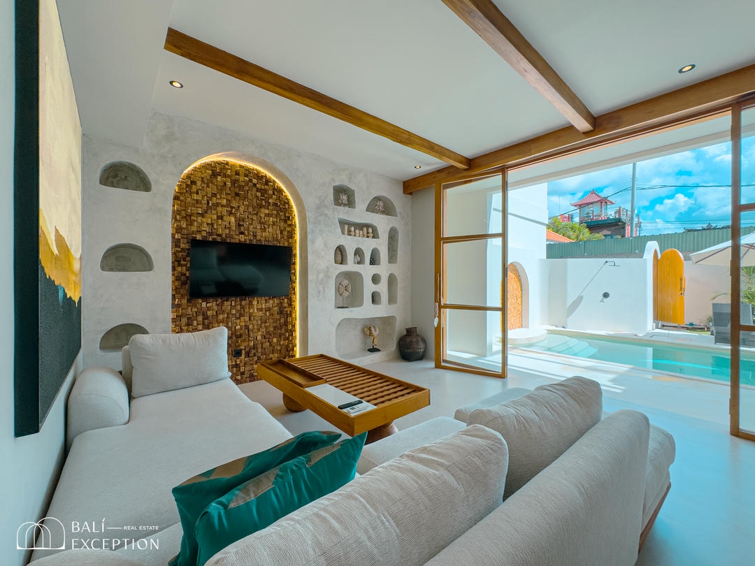 Located in the Bumbak area, this villa is ideally positioned in a popular residential zone with easy access to tourist attractions. It is surrounded by well-known spots such as Pizza Fabbrica, 7 AM Bakers coffee shop, and several wellness spots. The villa is just a 10-minute drive from Batu Belig and Berawa beaches, and offers convenient access to renowned beach clubs like Finns and Atlas.
