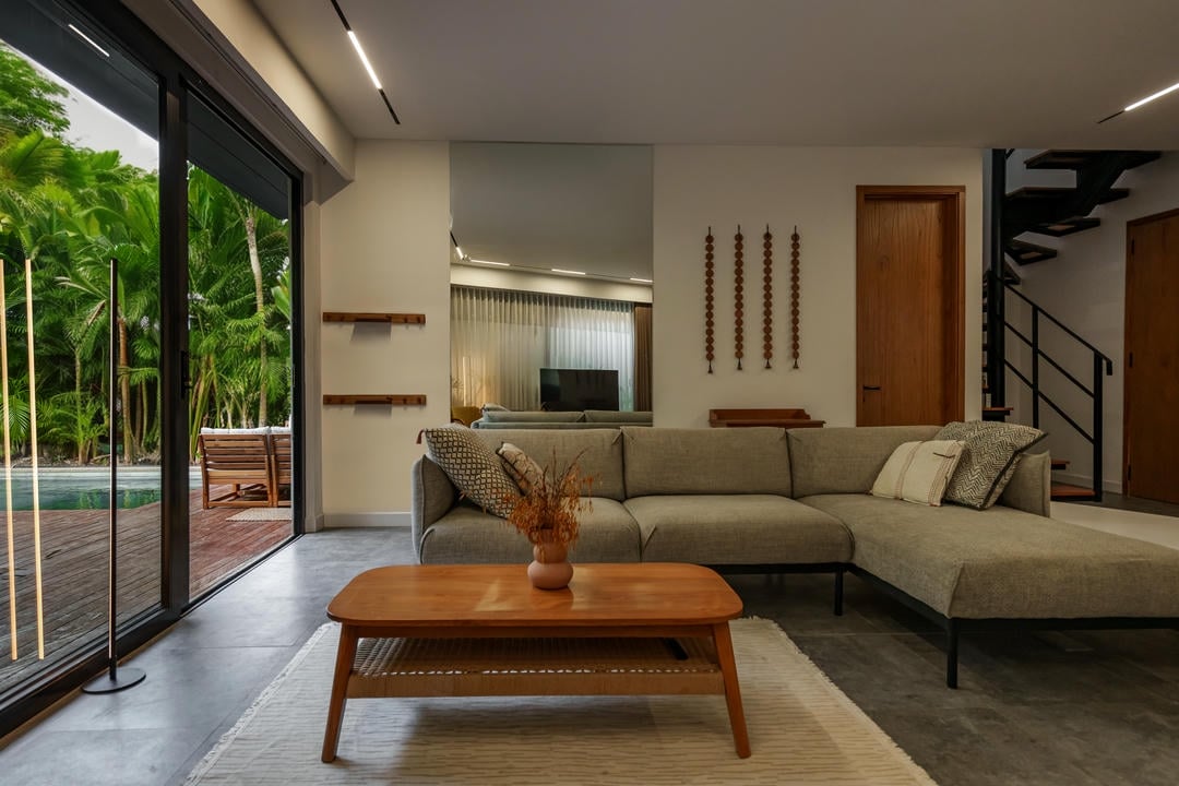 This ready villa offers available units of 3, 4, or 7 bedrooms, each with an enclosed living room featuring high ceiling windows and a guest toilet. It comes fully furnished with a modern, fully equipped kitchen and a comfortable dining area.